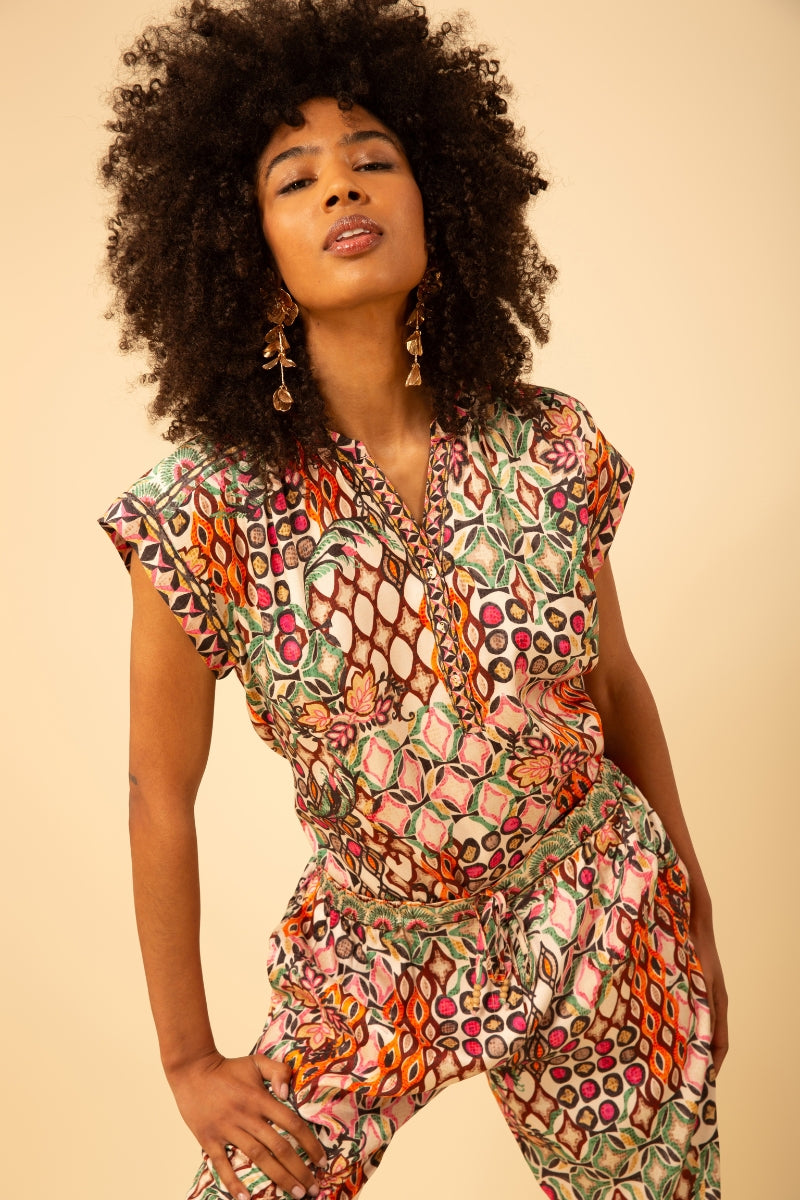 Effortlessly stylish and versatile, the Evie Twill Top features a partial button placket at the front, shirring details on the dropped sleeves, and a voluminous body that falls at the high hip. Pair with the matching Juliet Pant for a complete look.