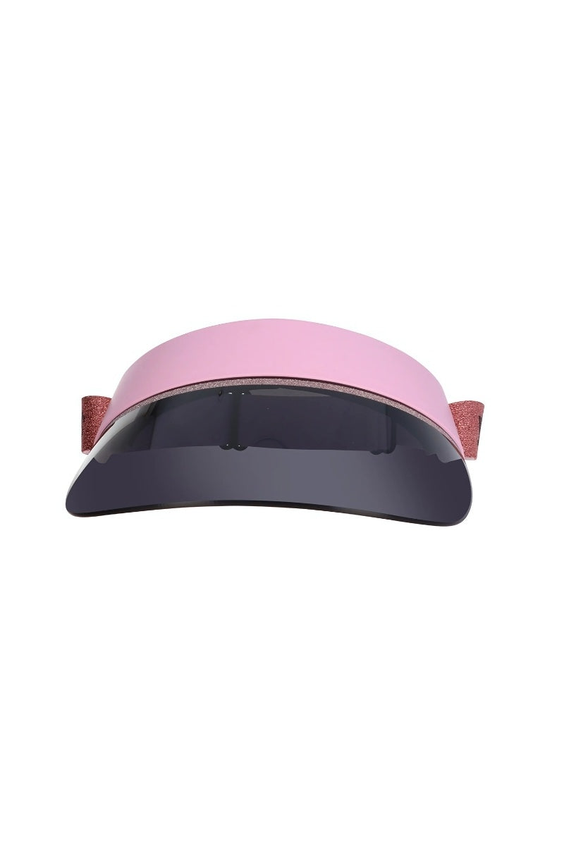 The lens is hand-embellished with a debossed shimmering fabric insert for a glamorous touch. Perfect for holiday adventures, the Jimmy Choo Sun visor delivers style and sun protection in one stunning package. Elevate your summer look today!