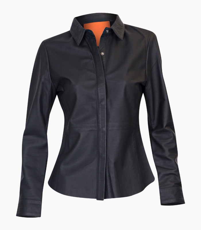 The Sarah Matt 100% Lamb Leather Shirt is impeccably tailored and can be worn as a Shirt or a Jacket. Wear it with your favorite jeans and sneakers for casual feel or pair with tailored pants or skirt for a more sophisticated look. Color may vary as this is a natural product with a hand finish.