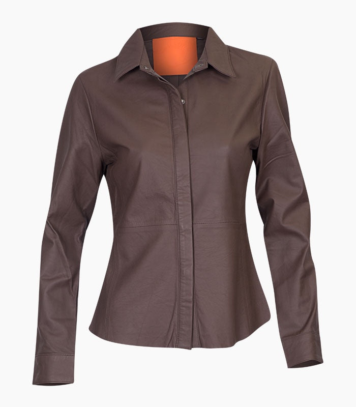 The Sarah Matt 100% Lamb Leather Shirt is impeccably tailored and can be worn as a Shirt or a Jacket. Wear it with your favorite jeans and sneakers for casual feel or pair with tailored pants or skirt for a more sophisticated look. Color may vary as this is a natural product with a hand finish.