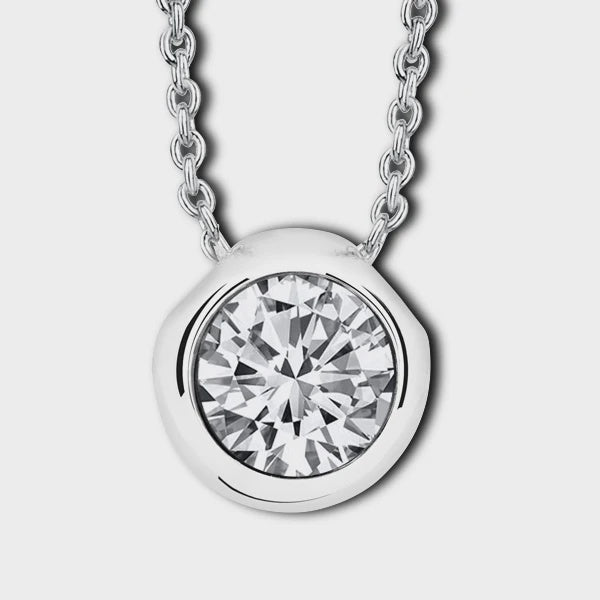 Rhodium plated Round Solitaire Pendant with Crystals.